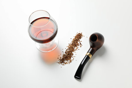 AI Generated. Intricately Carved Smoking Pipe with Smoke Rising on a Deep Red Surface
