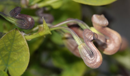 Exotic Pipevine Flower with Heart-Shaped Green Leaves
