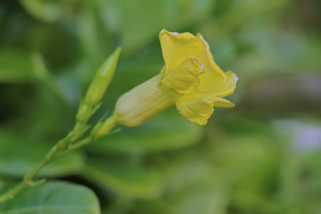 Orange trumpet vine flower or trumpet vine, Flame vine, Yellow trumpet vine, Yellow trumpet vine, Yellow trumpet vine