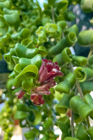 Flowering houseplant in the garden. Close-up.Aeschynanthus plant.