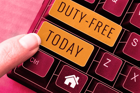 Handwriting text Duty Free. Business idea Store or establisbhement that sells imported products witout tax