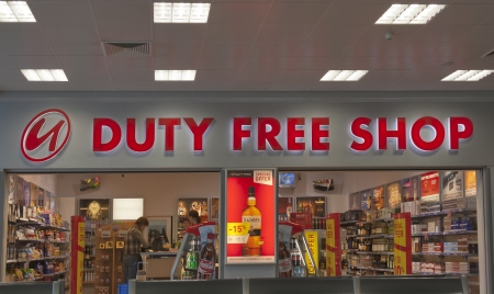 PRAGUE, CZECH REPUBLIC - NOVEMBER 16: Customers make a purchase in Duty Free Shop in Vaclav Havel International Airport on November 16, 2012 in Prague, Czech Republic. Biggest airport in country is a hub for Czech Airlines. Duty Free shops are the retail