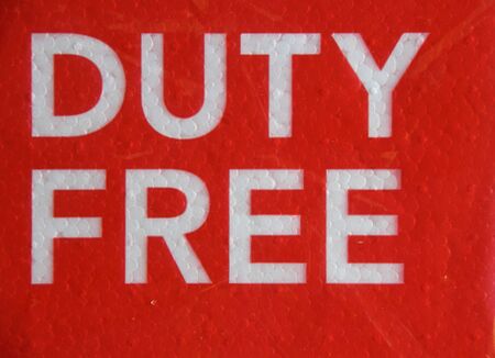 Duty free sign in white on a red background