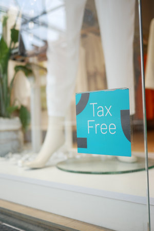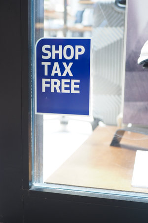 shop tax free text duty free shop sign on shop window