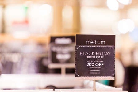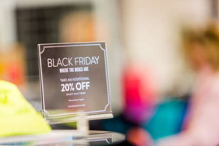 Kyiv, Ukraine - November 23, 2018: Black Friday banners on stores, November.
