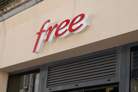 Bordeaux , Aquitaine France - 02 27 2023 : free sign brand and text logo front wall facade Shop French multinational store telecommunications corporation company
