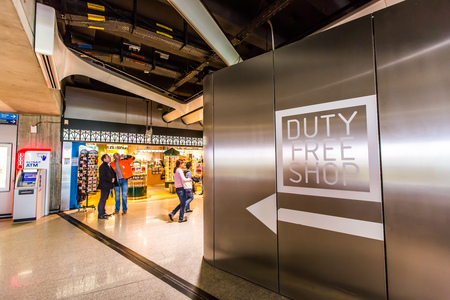 Oslo, Norway - December 2017: Duty Free Shop at Oslo Gardermoen International Airport. Oslo Gardermoen airport is the biggest airport in Norway.