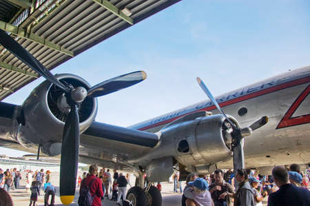 ESKISEHIR, TURKIYE - SEPTEMBER 22, 2024: Private Douglas DC-3A (2204) display in Sivrihisar SHG Airshow