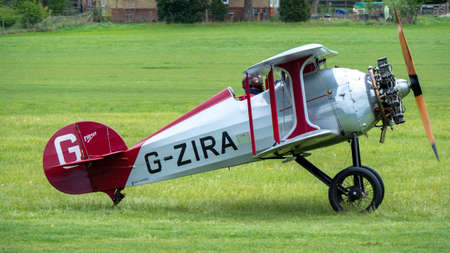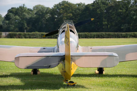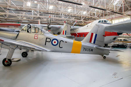 Biggleswade, UK - 29 June 2014: A vintage Miles Magister M.14 training aircraft on display at the Shuttleworth Collection museum.