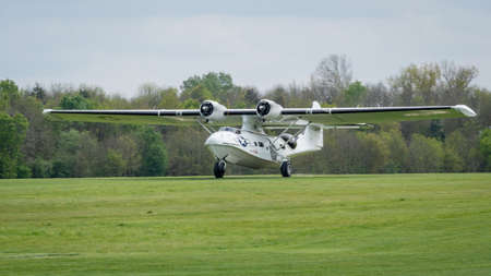 A vintage Catalina flying boat in flight