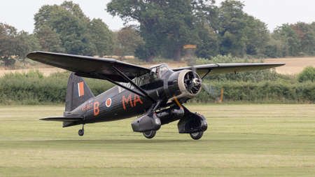 Old Warden, UK - 4th August 2019: A WW2 vintage Westland Lysander lands on an airfield