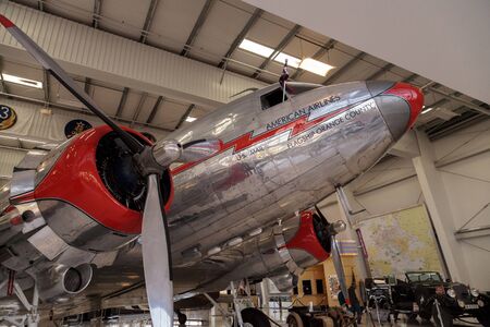Santa Ana, CA, USA - January 21, 2017: Douglas DC-3 airplane called Flagship Orange County displayed at the Lyon Air Museum in El Santa Ana, California, United States. It was used during World War II. Editorial use only.