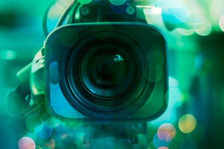 close - up video camera standing to shoot the best work with color bokeh