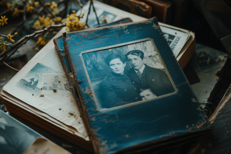 Vintage photo album with family memories and floral design. That the image is generated using AI.