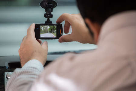 Car video camera (dash cam) in car ,Concept of safety camera for car protection, technology for safety
