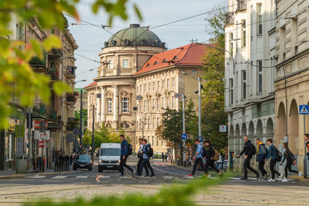 Panorama of Wroclaw city in Poland. Street of Wroclaw, aerial view. Europe town cityscape.