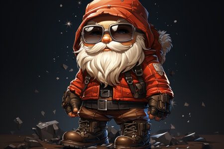 A cartoon gnome with sunglasses and a red jacket. Generative AI.