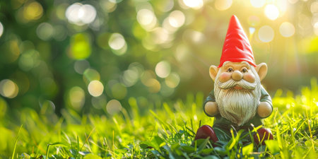 Garden gnome on the lawn close-up with copyspace. High quality photo