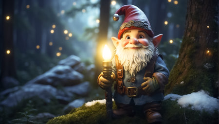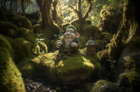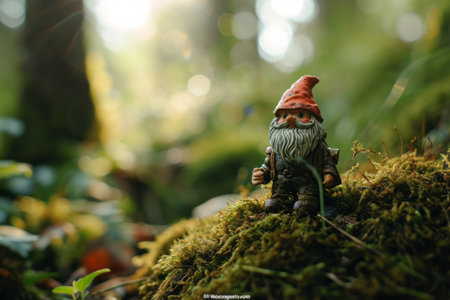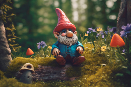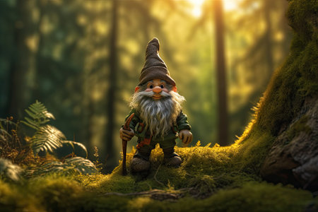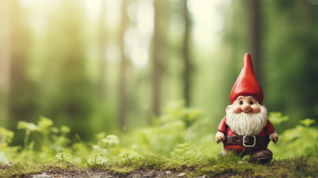 Garden gnome in the forest. Generative AI illustrator