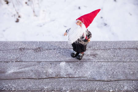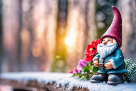 Festive christmas gnome in snowy winter scene