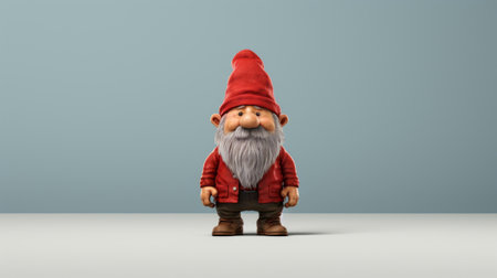 a 3d fantasy cartoon featuring a gnome wearing a vibrant red outfit with white fur, standing against a mesmerizing 3d animated background. the artwork showcases a minimal retouching style, drawing inspiration from platforms like flickr, sketchfab, and toyism. the composition beautifully combines natural and man-made elements, with a color palette of light indigo and dark brown. captured using a minolta riva mini camera. ai generated