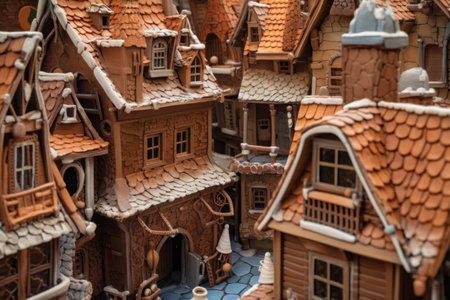 close-up of gingerbread walls and roof pieces, created with generative ai