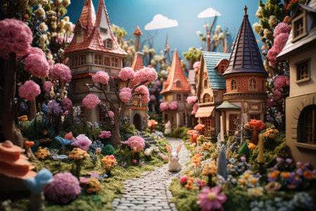 miniature,Super cute clay world,isometric view of garden. beautiful Generative AI AIG32