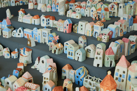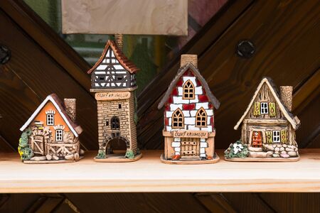 Decorative ceramic houses. Souvenirs on street in Cesky Krumlov, Czech Republic.