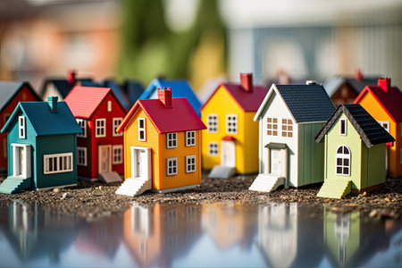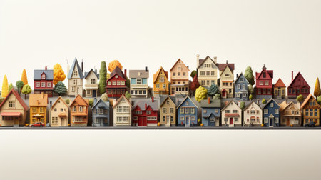 Toy houses on the street. Buying and renting housing. AI generative. Illustration in photorealistic style.