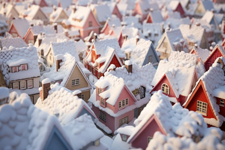 Snowy Roofs: Capture the charm of houses and buildings with snow-covered rooftops. - Generative AI