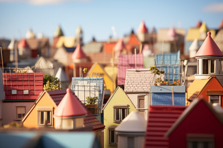 Vibrant and colorful miniature toy cityscape with detailed tiny buildings and playful architecture, perfect for educational and creative hobby collection and display for kids