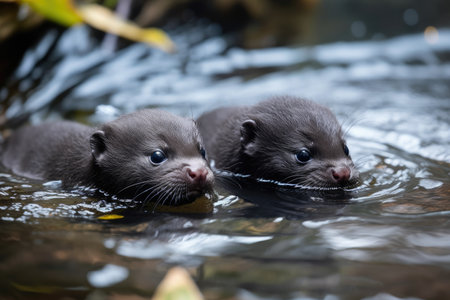 close-up of baby otters, their eyes and paws perfectly in focus, created with generative ai