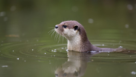 Charming Otter Swimming Gracefully in a Tranquil Forest Stream Surrounded by Autumn Leaves and Lush Greenery on a Calm Day