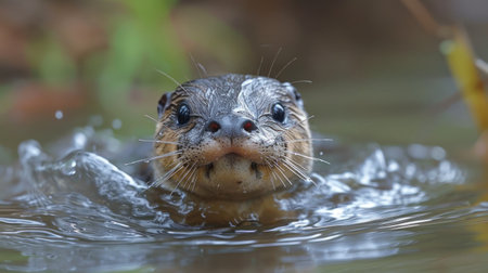 Close Up Portrait of a Wet Otter with Droplets on Fur in Natural Habitat.