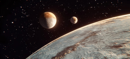 Generative AI : Planet Pluto and Charon system Elements of this image were furnished by NASA