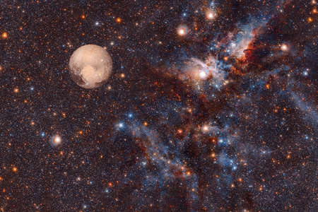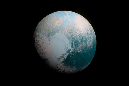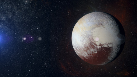 Planet Pluto in the Starry Sky of Solar System in Space.