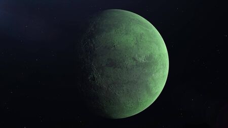 Realistic Green Alien Planet in the outer space, 3d rendering.
