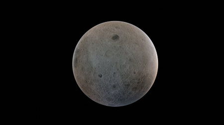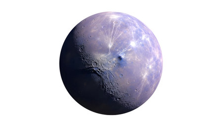 Realistic planet Mercury isolated on white background with detailed surface textures, craters, and reflections. Perfect for scientific, educational, or commercial stock use.