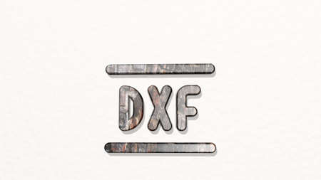 DESIGN DOCUMENT DXF from a perspective on the wall. A thick sculpture made of metallic materials of 3D rendering. illustration and background