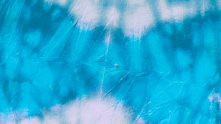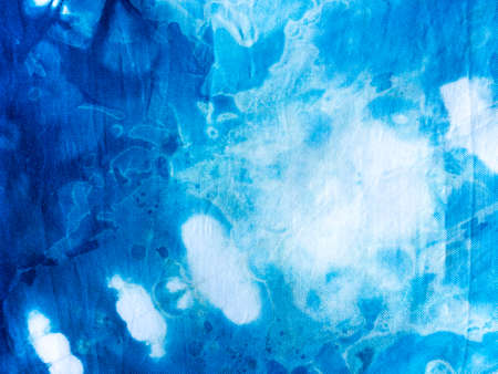 Tie-dye cotton fabric texture blue and white paint colors. Ancient resist-dyeing textile coloring technique, saturated primary colors, bold patterns, simple motifs, monochromatic color schemes garment