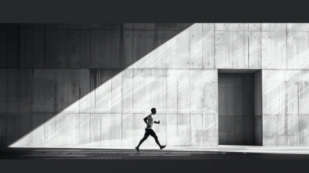 Silhouette of a runner runner at the black and white lines of City of Arts and Science, modern building designed