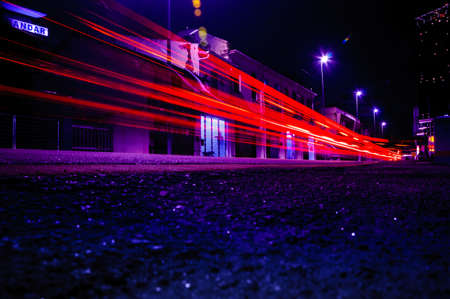 blue car lights at night. long exposure