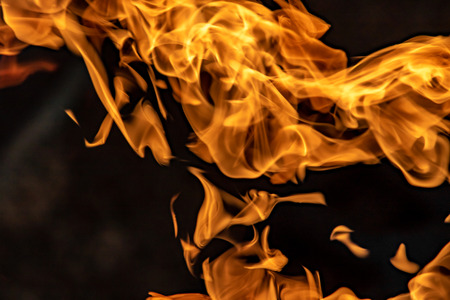 Fire flames on black background. Closeup of fire flames. Abstract fire flames background.