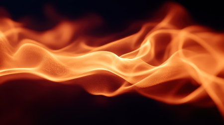 This image depicts intense flames with vibrant orange and red hues, creating a dynamic visual. The composition features a close-up of the fire, highlighting its texture and movement against a dark backdrop. Suitable for illustrating energy, heat, or conceptual themes in commercial projects.