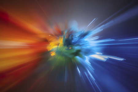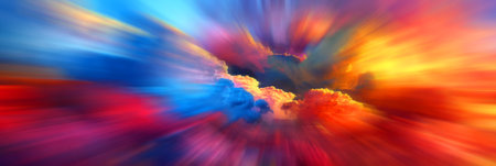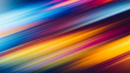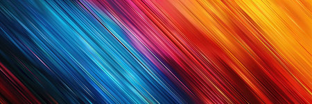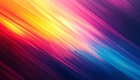 Diagonal streaks of vibrant rainbow colors are blurred, creating a dynamic and energetic abstract background pattern...