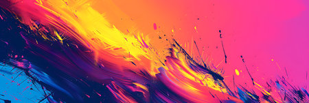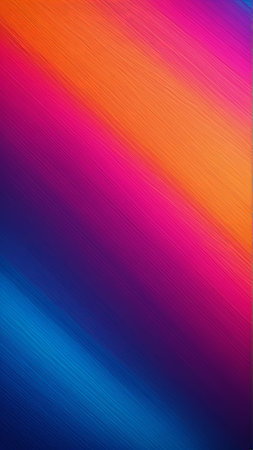 Vibrant abstract gradient background with diagonal brush strokes in orange, pink, and blue.