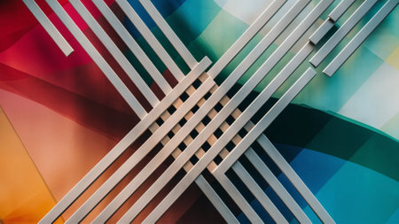 Abstract multicolored background formed by straight and sinuous lines. AI generated.