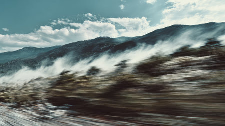 Mountain landscape with motion blur creating a sense of speed