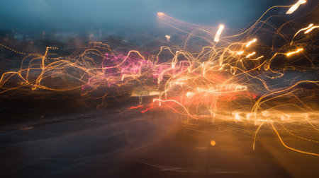 Capture the essence of motion with vibrant abstract light trails. This dynamic image features swirling colors and glowing lines that convey energy and creativity. Perfect for modern design projects.