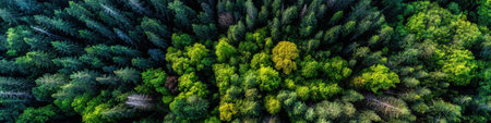 Healthy green trees in a forest of old spruce, fir and pine trees in wilderness of a national park.